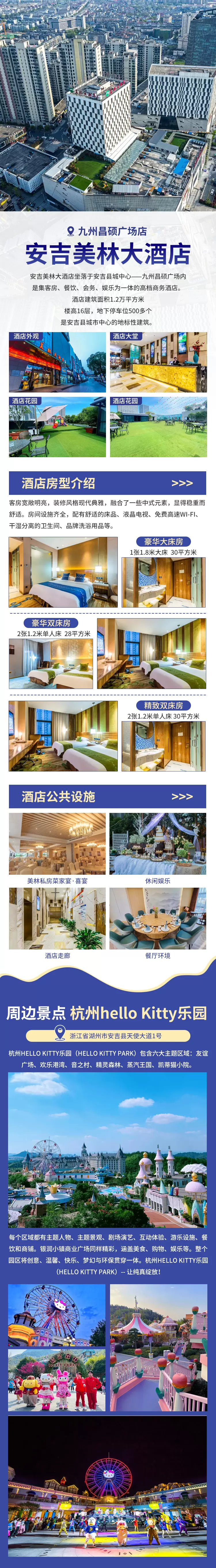 安吉美林大酒店(九州昌硕广场店)1晚+双早+杭州hello Kitty乐园门票2张