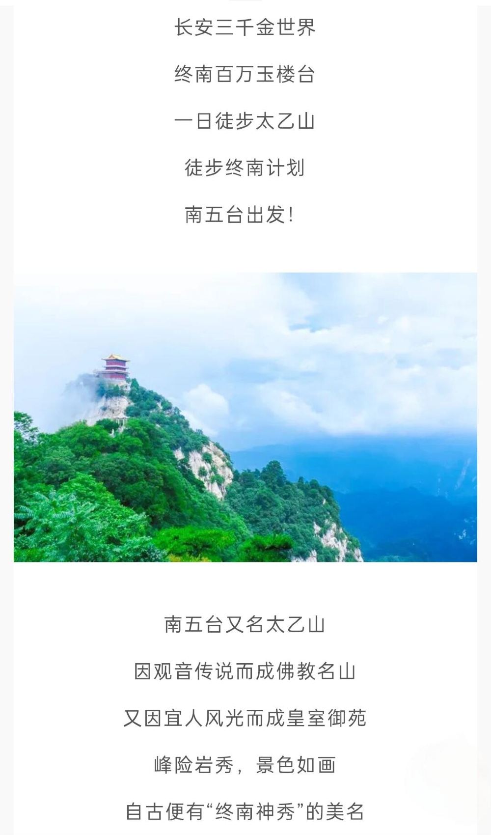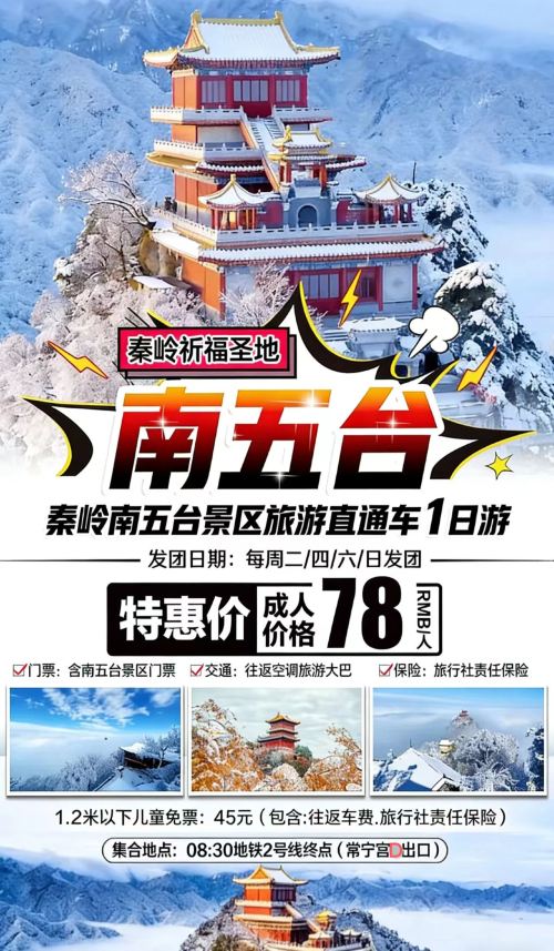 终南山南五台景区位于陕西省西安市长安区秦岭北麓,海拔1688米,是西安秦岭终南山世界公园核心景区,古称太乙山,因山顶有观音、文殊、清凉、灵应、舍身五峰且位于长安城南而得名。2024年10月晋升为国家AAAA级旅游景区,以山岳奇峰、佛教文化和自然景观为特色。
