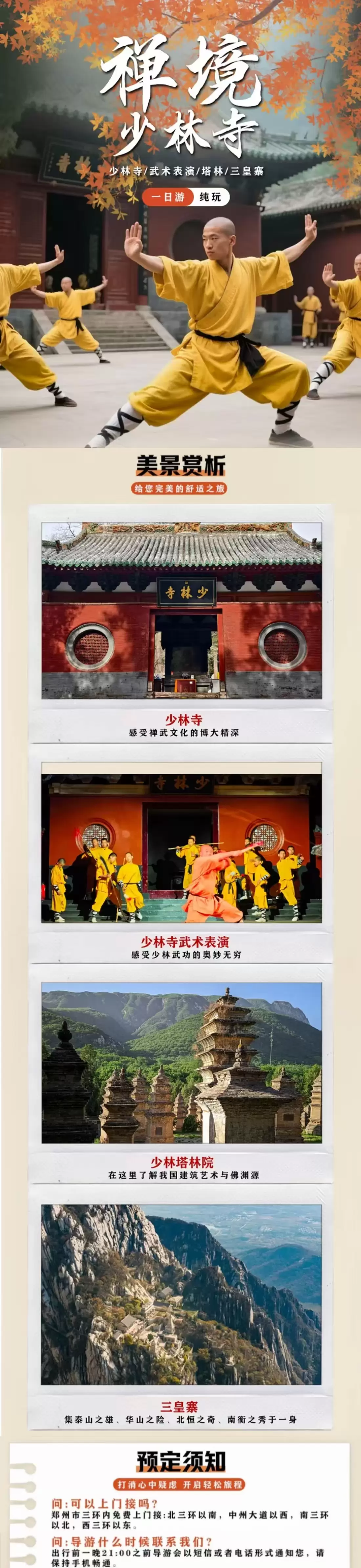 郑州少林寺一日游【郑州起止+景区门票+全程优秀导游服务+含往返交通】