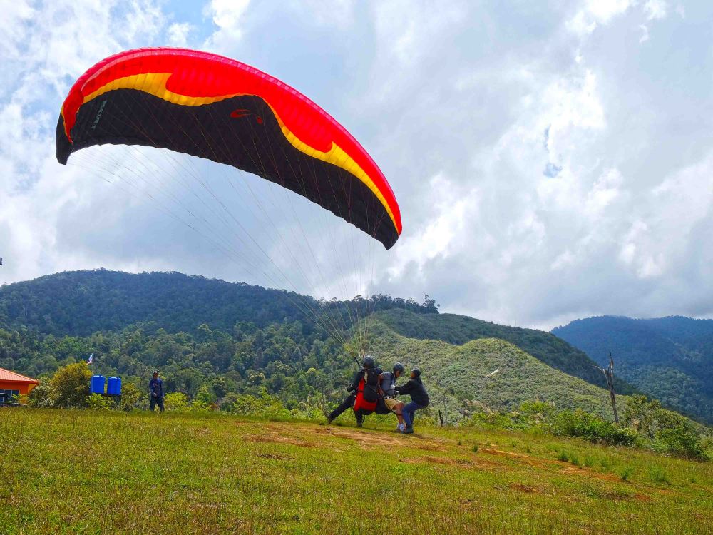 在专业教练的安全指导下,体验哥打京那巴鲁双人滑翔伞的刺激。