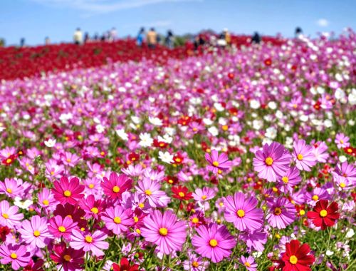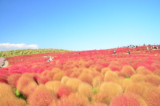 ▲ 常陸海滨公园起伏的壮丽山丘。这座公园以其四季变幻的美景而闻名,是摄影爱好者的天堂。根据季节的不同,您可以漫步在淡蓝色的粉蝶花田(春季)、绚丽的向日葵花海(夏季),或如梦似幻的红色地肤草和粉红色波斯菊(秋季)。这里是日本最上镜的景点之一,花海交融,美不胜收