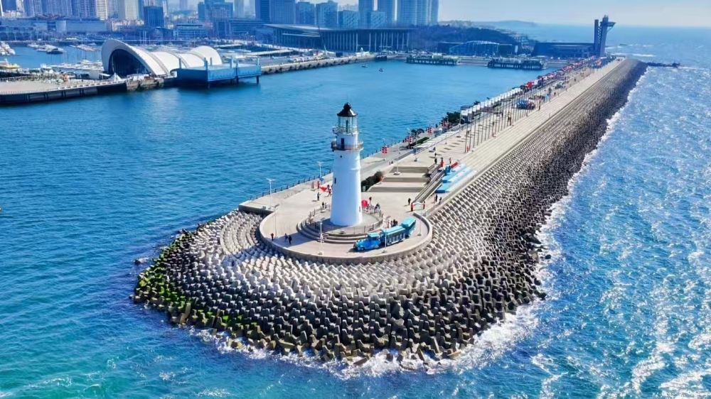 ▲ 青岛地标“五月的风”雕塑,感受城市现代脉搏。