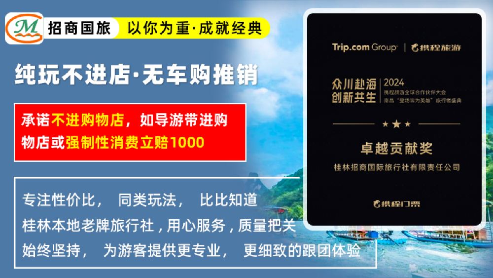2、无车销团:携程实惠团优选,真纯玩,无车销,承诺不进购物店,绝无强制消费,如导游带进购物店或强制消费立赔1000元。
