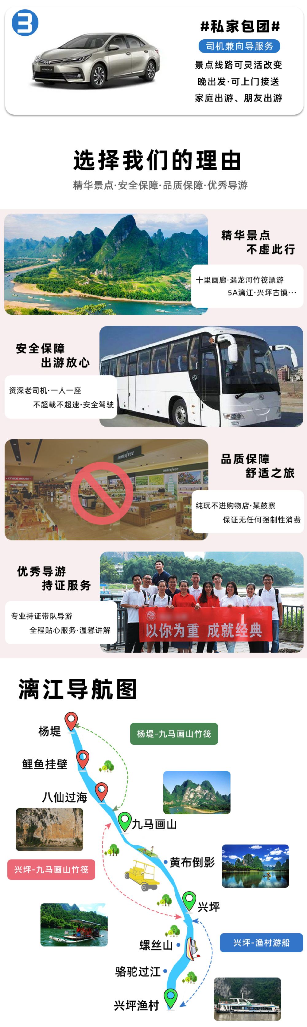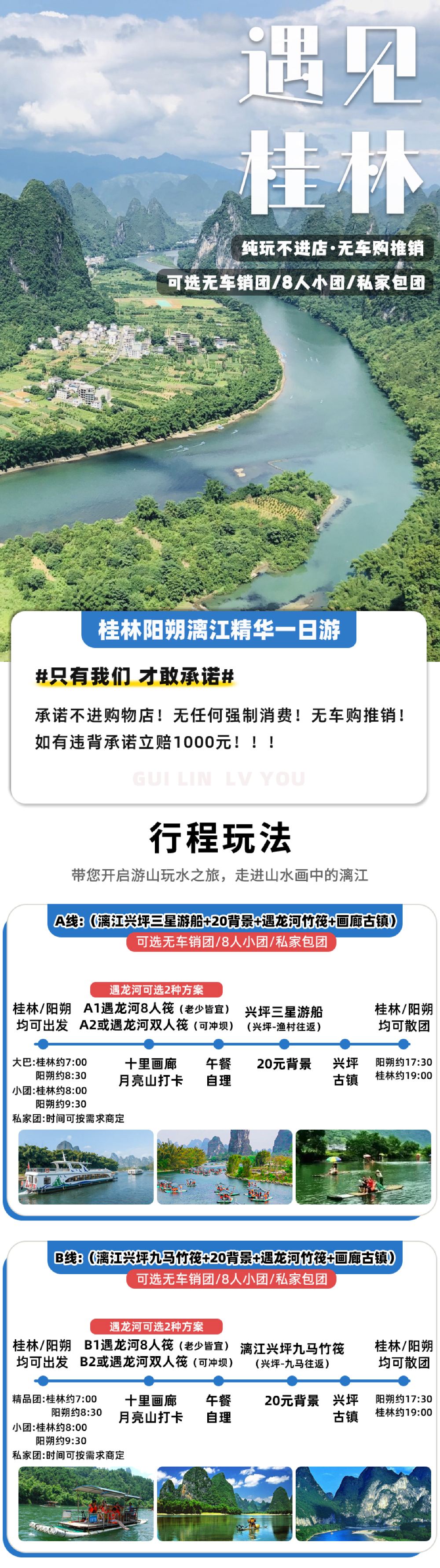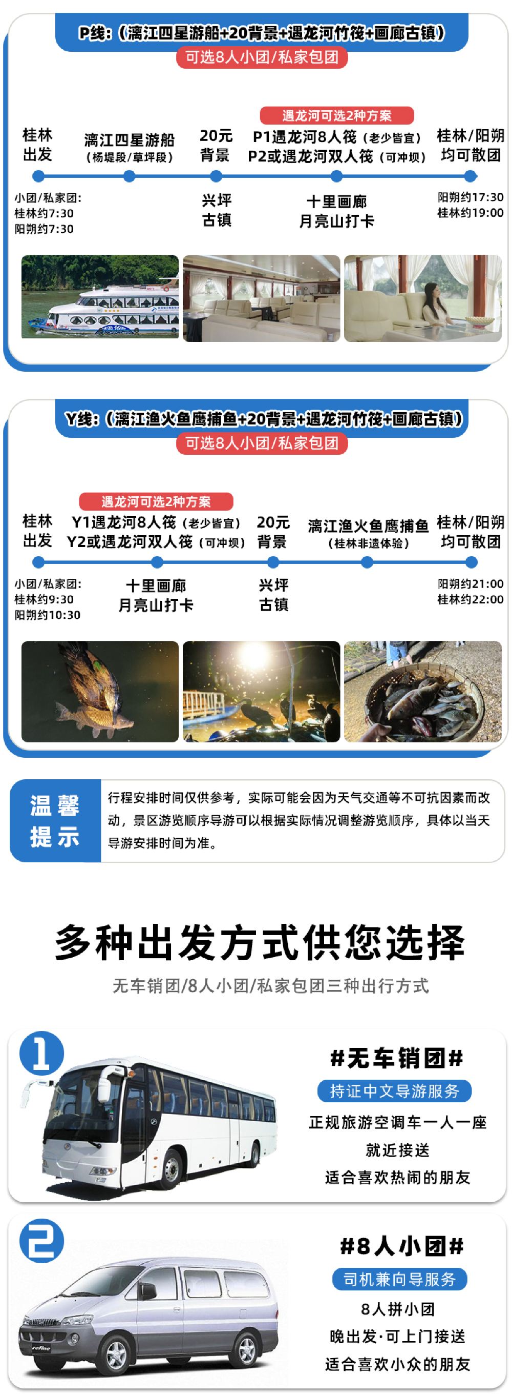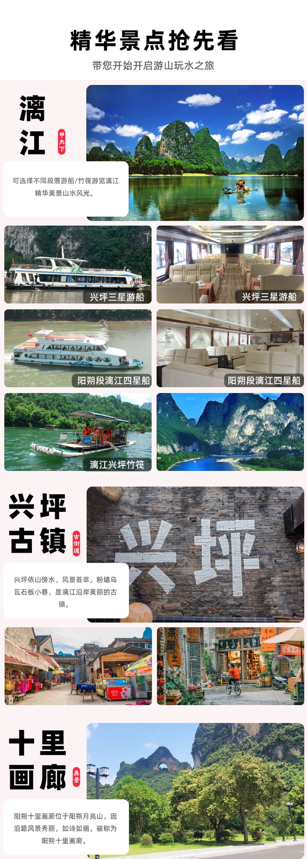 P1线:阳朔漓江四星游船+遇龙河8人竹筏漂游+20元背景+兴坪古镇+十里画廊;