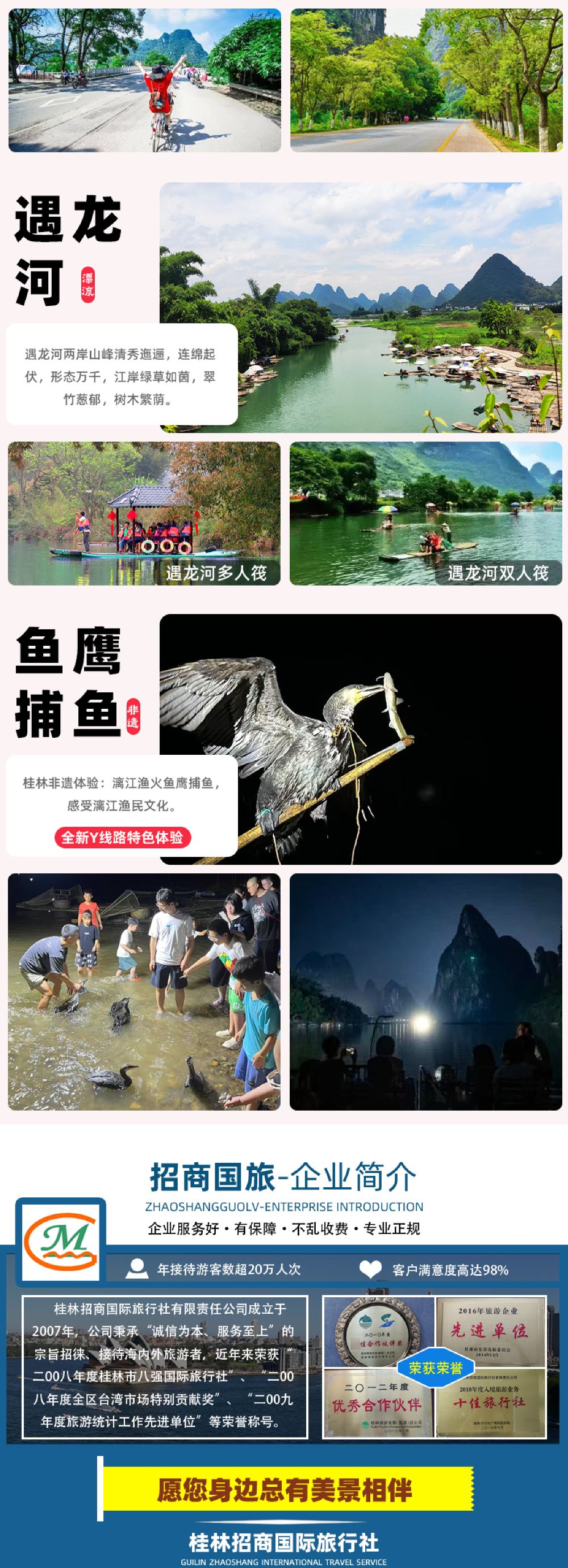 Y2线:桂林非遗体验:夜漓江渔火鱼鹰捕鱼+遇龙河双人竹筏漂游+20元背景+兴坪古镇+十里画廊;