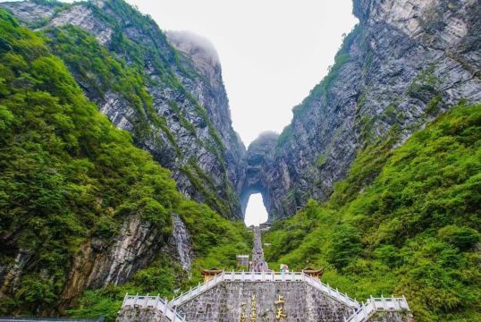 我们的导游和司机将在酒店与您会合,随后前往天门山,乘坐世界上最长的缆车登顶天门山,沿悬崖峭壁修建的山间栈道漫步。当云雾缭绕时,您会恍若置身仙境。天门山的世界奇观"天门洞"在中文里意为通往天界之门,因世界顶级翼装飞行运动员穿洞而过而闻名。最受欢迎的景点包括:玻璃空中漫步、天门洞、99道弯盘山公路等。