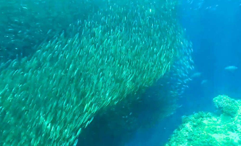 ▲ 潜入闪闪发光的水下芭蕾,观看成千上万条沙丁鱼齐心协力游动——体验纳帕林令人着迷的生命节奏。