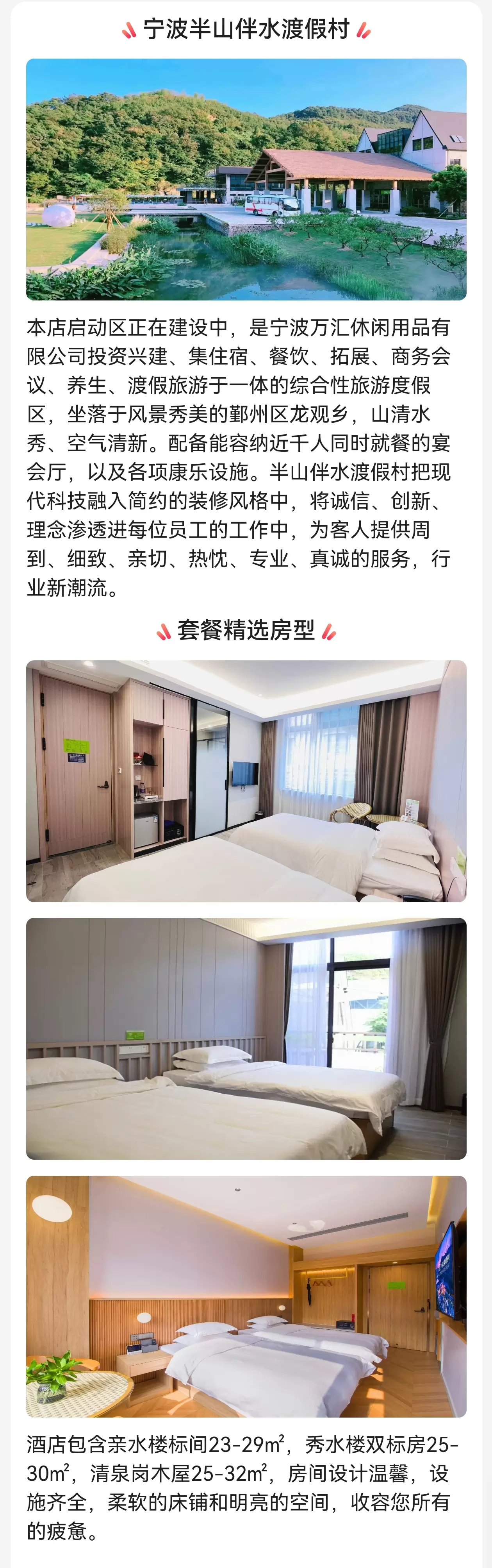 【新春特惠】宁波半山伴水渡假村1晚含早+可选双人观顶湖+中坡森林门票+小火锅套餐,或儿童7项畅玩+土窑美食套餐