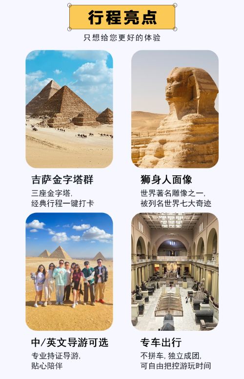 埃及金字塔+狮身人面像【可选中文导游+门票+专车接送】一日游【[一键打卡]埃及金字塔,古老而神秘,矗立在沙漠之中,仿佛是历经千年的历史长卷,诉说昔日的辉煌与沧桑。】