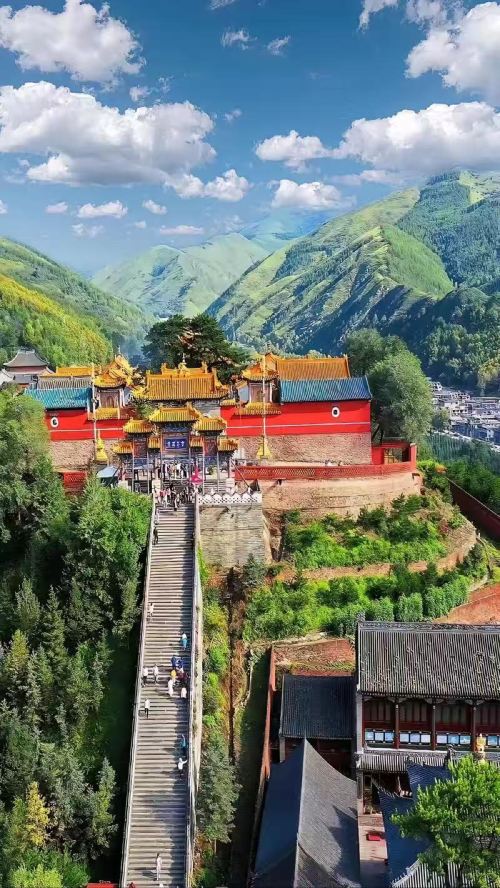 ▲ 【黛螺顶】五台山广泛留传着一种说法,来到五台山,不登黛罗顶不算朝台人!可徒步攀登1080级台阶大智路朝拜五方文殊菩萨,祈智慧!黛螺顶亦名大螺顶,又名青峰,位于山西省五台山台怀镇东面清水河旁,占地面积为4.8万平方米。黛螺顶是一座小山峰的名称,寺庙建在山顶上,所以被称为“黛螺顶”。黛螺顶始建于明成化年间(1465—1487年),万历年间重修。清乾隆十五年(1750年),改名大螺顶;至乾隆五十一年(1786年),才更名为黛螺顶。 黛螺顶坐东面西,寺宇不大,内有殿堂僧舍48间。中轴线上由西向东依次有