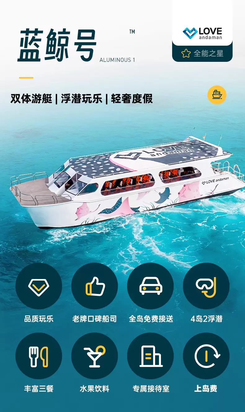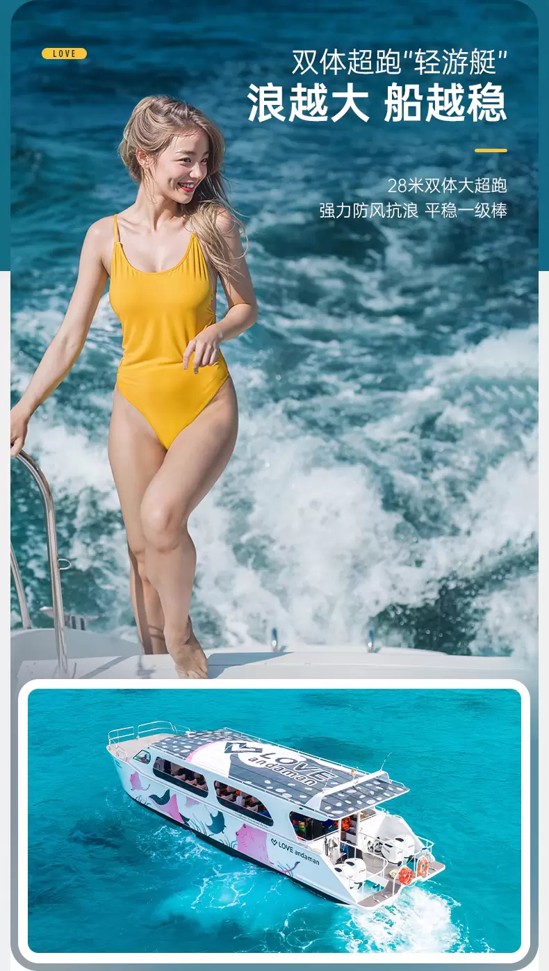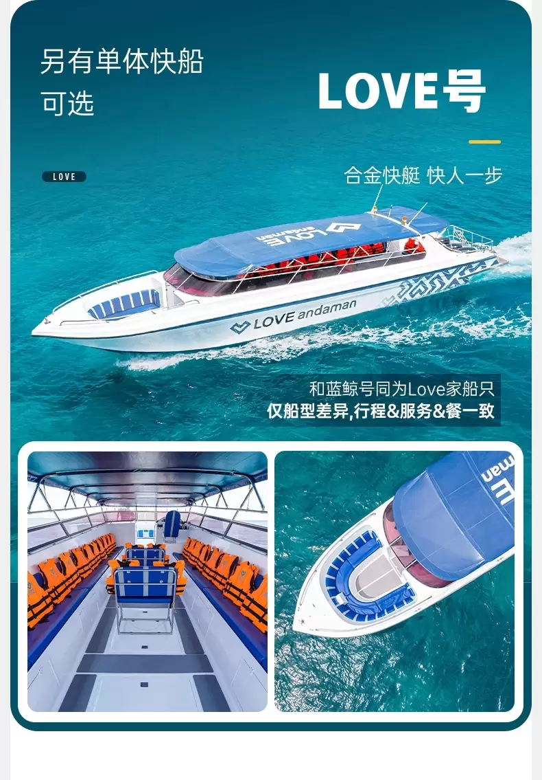 【中文导游 全岛酒店接送】普吉岛LOVE安达曼斯米兰一日游双体游艇/合金快艇 跳岛浮潜 三餐全含