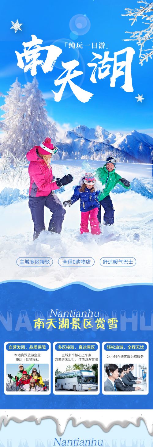 6、赏雪玩雪须根据当天天气情况而定,如由于天气原因无雪旅行社不承担任何责任;冰雪节期间景区人多导游无法全程陪同游览,请客人根据导游规定的时间、地点准时集合;