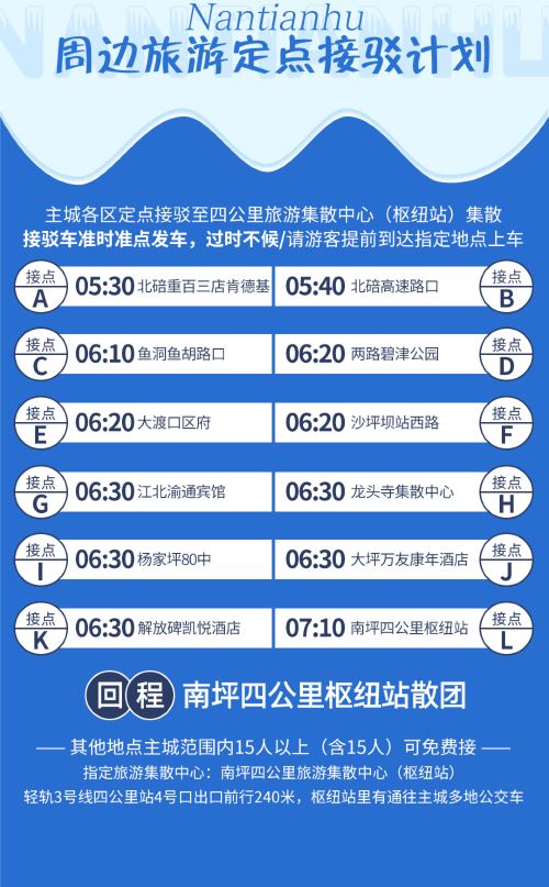 1、如您多个订单需要安排在同一辆车出游,请在出发前一天16:00之前联系客服或订单回执中紧急联系人报备,以便旅行社安排预留车位以及购买门票,逾时将无法调换车位。
