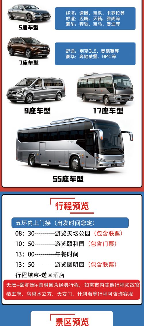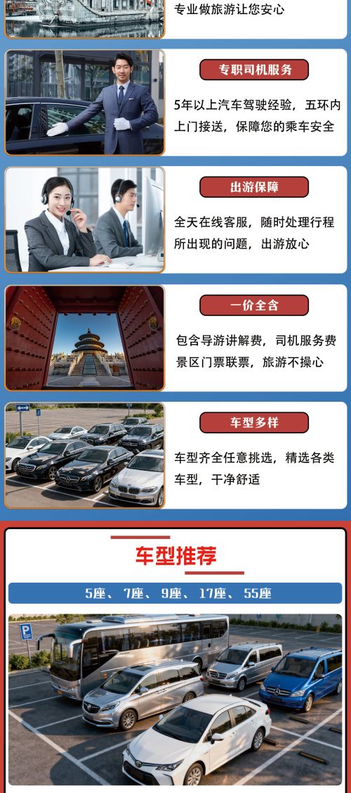随时出发,可为您订制线路,长城线路,市内套餐任您选择,一日游,专车+导游服务。