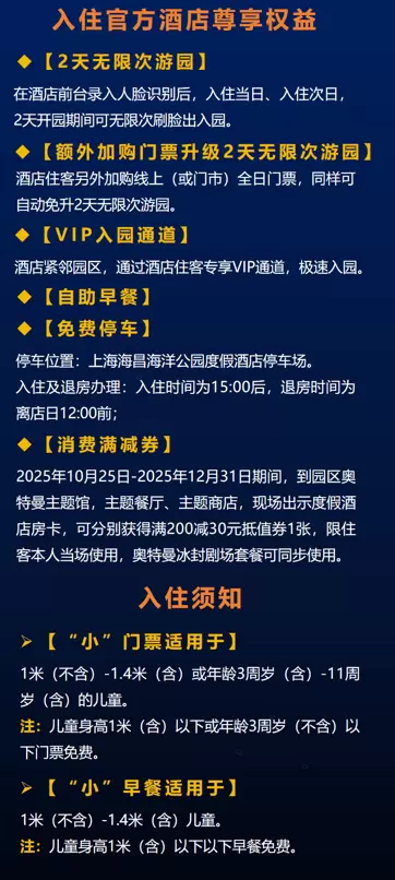 【乐园旁官方酒店】上海海昌海洋公园度假酒店1晚+自选双人/亲子2日海昌无限次门票+VIP入园通道|步行5分钟