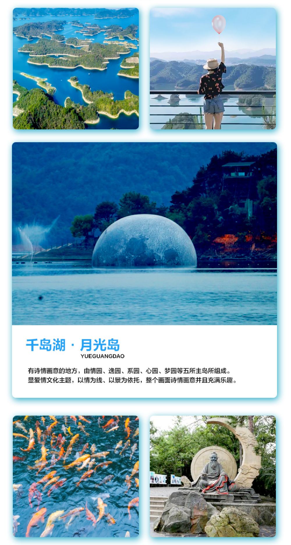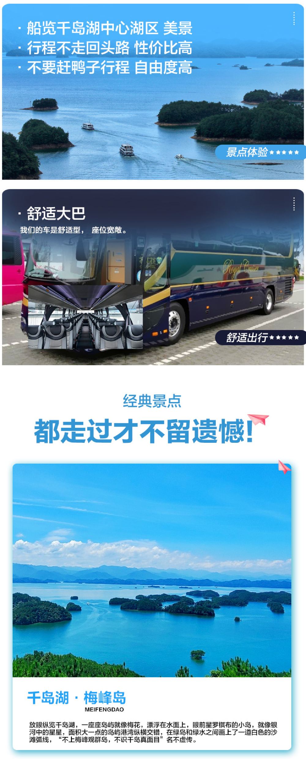 景点升级:正宗千岛湖,登梅峰岛览千岛全景,游玩月光岛4岛3桥,船游两大湖区【中心湖区+西南湖区】,环游核心湖区,探寻西南秘境,深度纯玩。