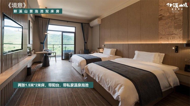 惠州龙门南昆山竹溪山境温泉酒店+含2大1小早+泡池房赠送2池阳台私家温泉水,两包养生药浴包