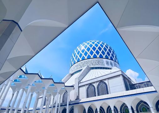 ▲ 苏丹沙拉胡汀阿都阿兹沙清真寺(Sultan Salahuddin Abbul Aziz Shah Moaque),别名「蓝色清真寺」。清真寺是由当时的雪州苏丹苏丹沙拉胡丁在1974年倡导兴建,1982年动工,1988年3月11日落成。