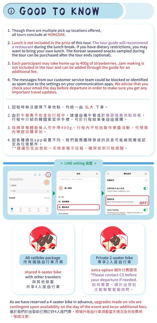 ▲ 3岁至12岁请选择小童订购;未满36个月之幼儿可免费参加行程,但不占单独座位。若有同行幼儿,请于订购时备注并提供年龄证明文件。 本行程之最低成团人数为6-8人,如未达此人数,我们将主动联系您协商更改出行日期或办理全额退款,并于出发前一日透过电邮通知
