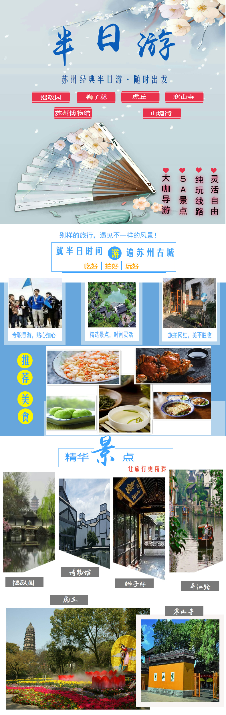 苏州纯玩半日游 拙政园/狮子林/寒山寺/虎丘/山塘街/游船 多套餐可选