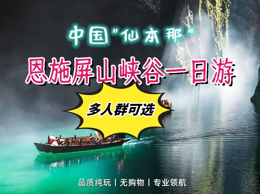 早上集合乘车前往前往屏山峡谷(车程约3.5小时,游玩时间约2-3小时)屏山风景如画,那幽深地缝一线天、千尺飞瀑二等岩、令人遐想的三姊妹尖、易守难攻的四大关口、傲然屹立的五尺门、风雨沧桑的六代土司爵府、劈荆斩浪的七丈五、云海仙境八卦岩、田氏家族九大诗人,洞府和爵府之间的十字街、守护屏山的百泉河、绝佳胜景千古黑龙蛋、内藏诗万卷的万全洞,这些人文旅游资源,这些古桃源胜景,无不蕴藏土家族浓厚的文化底蕴。峡谷溪水清澈见底,景区内乘坐小木船,体验悬浮之感,船行其中犹如太空飞船,被中外游客