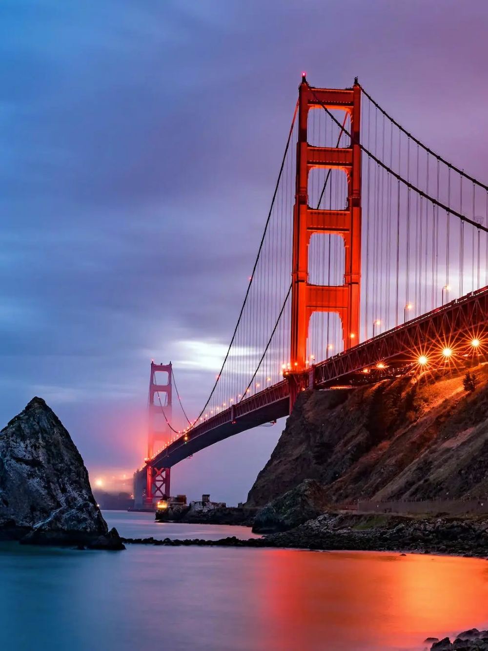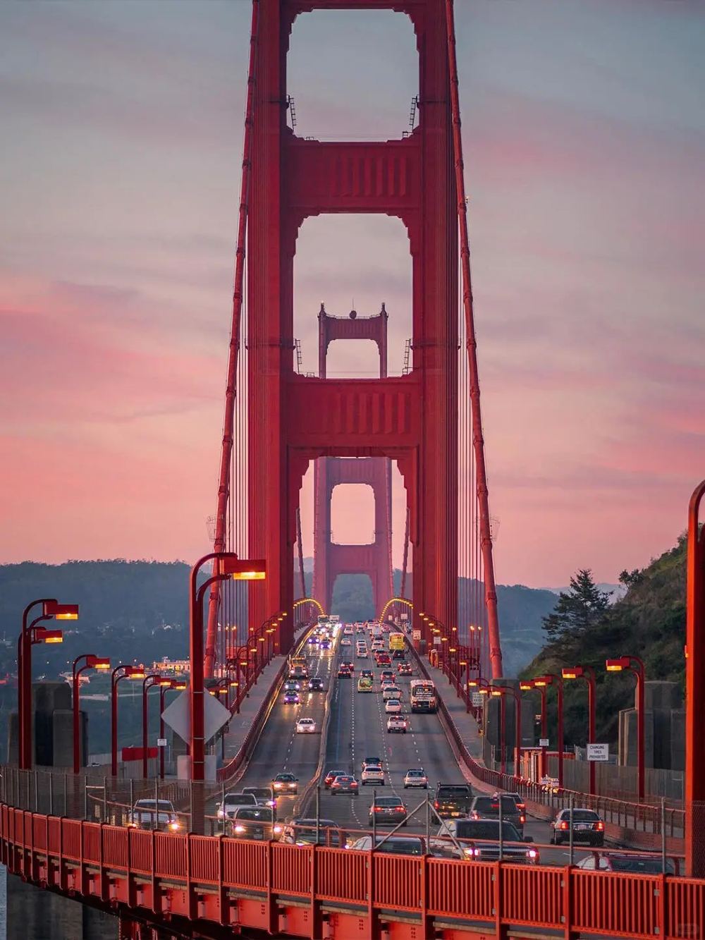 金门大桥:旧金山标志性橙红大桥横跨碧海蓝天,无论哪个角度都美炸。日落时分,余晖洒落,画面如决美油画,必打卡拍照留念。