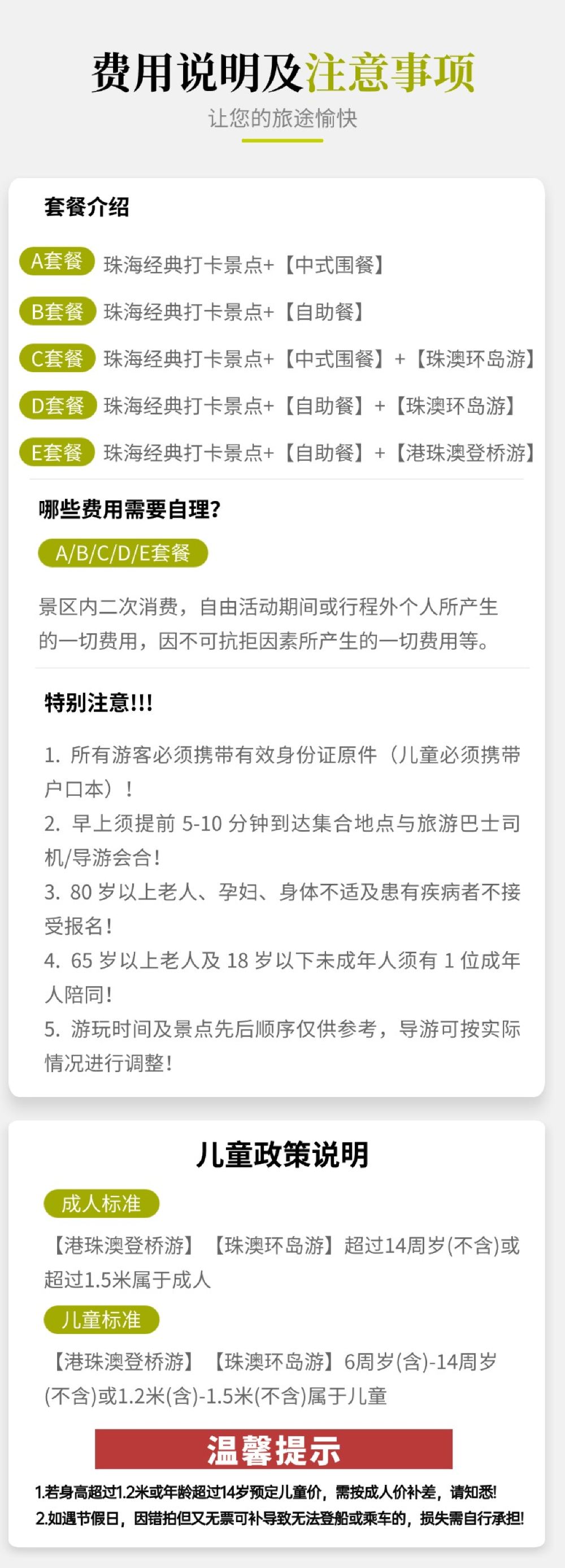 【珠澳环岛游】身高超过1.2米的顾客属于成人;