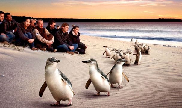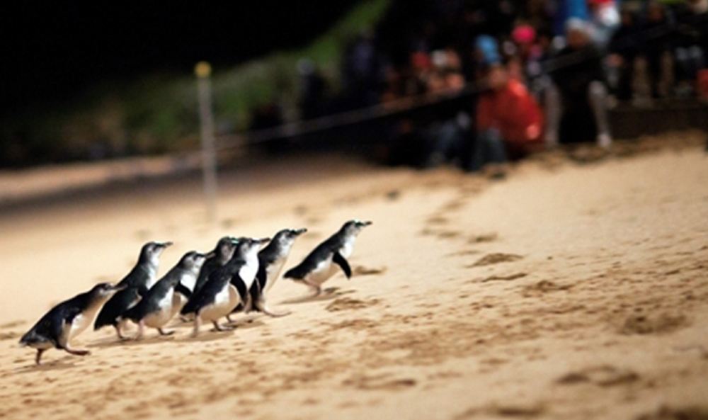 【企鹅岛】夜色降临时,之后前往被称为“企鹅岛”的菲利浦岛(Phillip Island),观看南半球特有的动物奇观----企鹅归巢。到达后观光区内灯光充足,游客可以在夜间清楚地看到小企鹅的一举一动,以及它们回巢时的奇景。行程结束返回集合点。