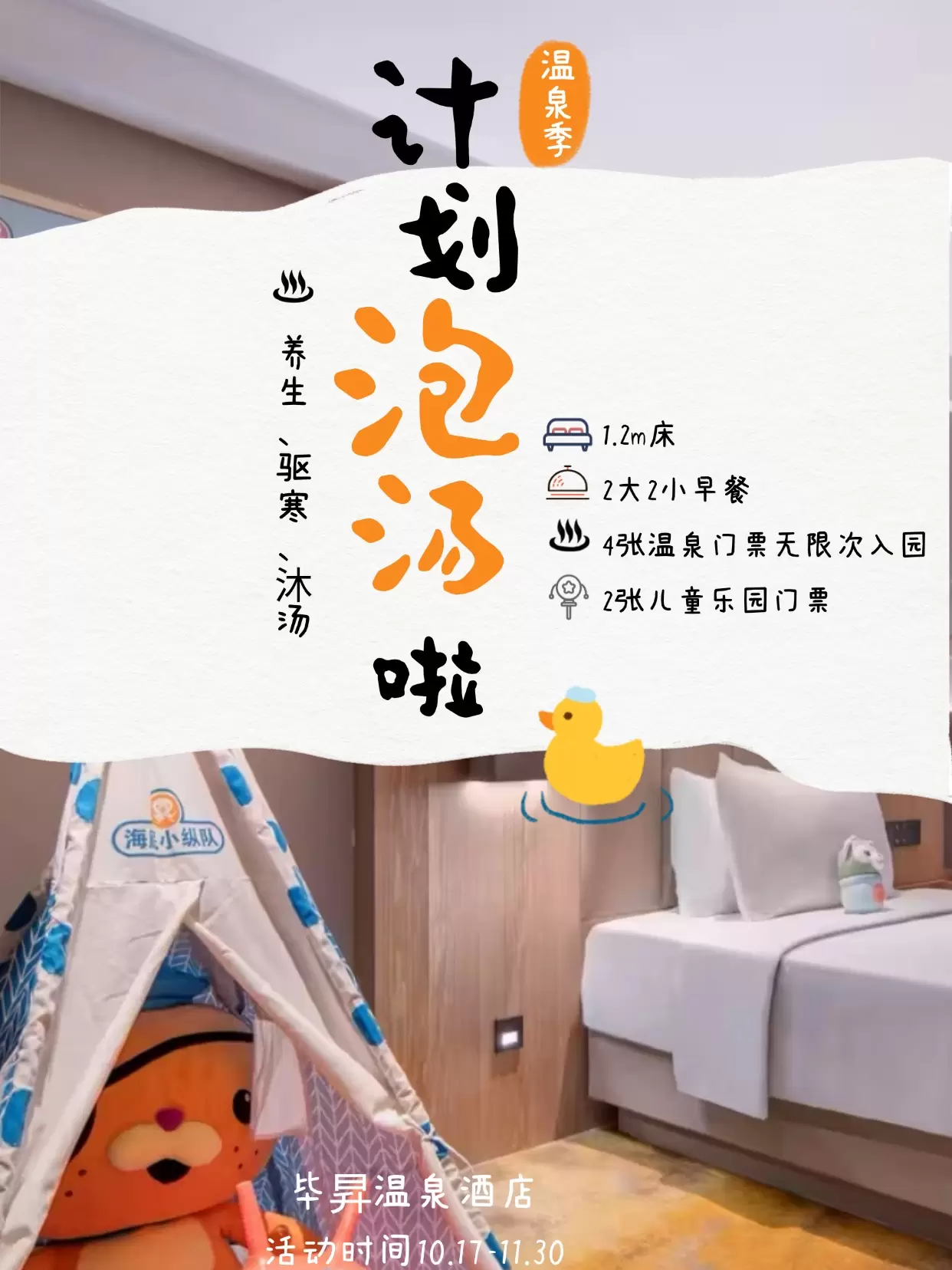 【毕昇温泉】亲子房+早餐+温泉+儿童乐园