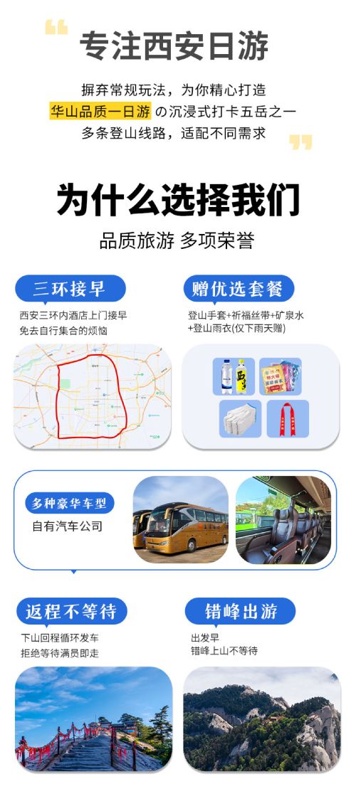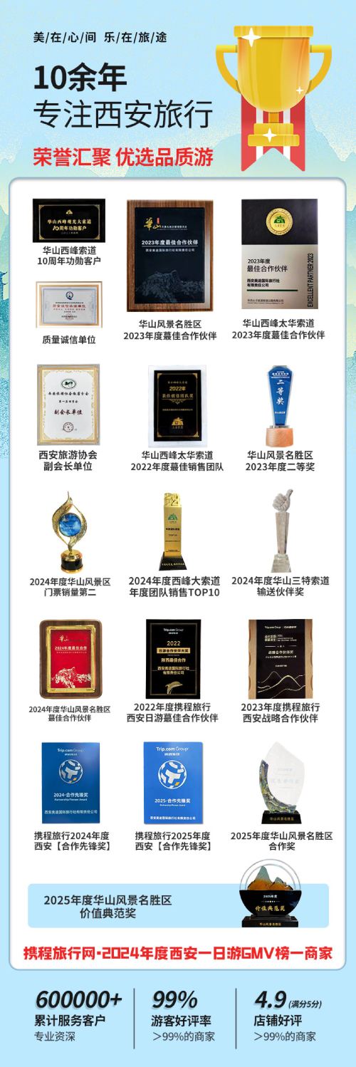 【华山景区官方店】华山一日游+免升头等舱+登山礼包+纯玩团【[品质保证]可选陆地头等舱(一排三座),可选16人商务精致小团。可选高科技外骨骼助力套餐。】