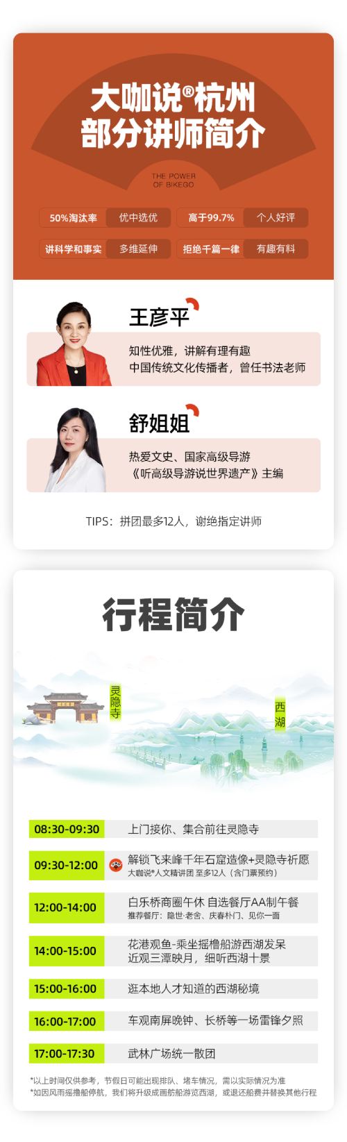 1. 【成团说明】:本产品设有最低成团人数2人,如未达最低成团人数,bikego工作人员会在出行前1天20:00前(出发地当地时间)通知您并全额退款
