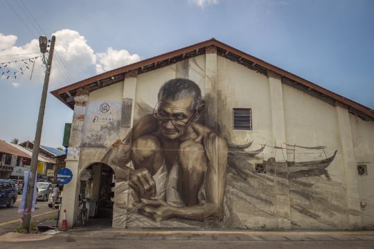▲ 《补渔网老人》是来自俄罗斯斯伯利亚的女画家Julia Volchkova之手,Julia 擅长绘画人物肖像,她一般都结合当地风土人情来进行创作。