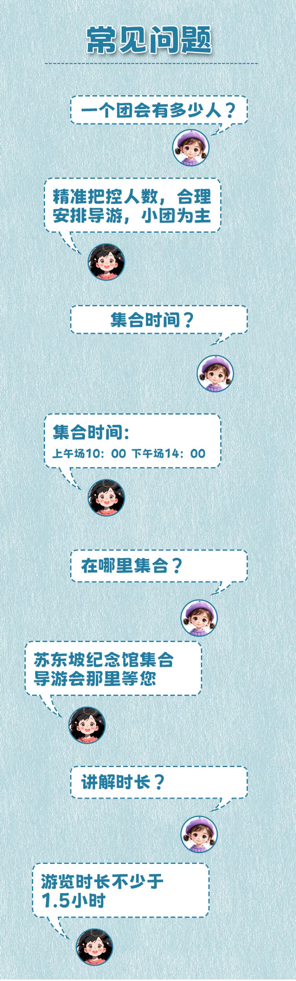 备注:由于每周二苏东坡纪念馆闭园(无法入内讲解),讲解员会在苏东坡纪念馆门口和苏东坡雕塑这边为大家讲解,请知晓