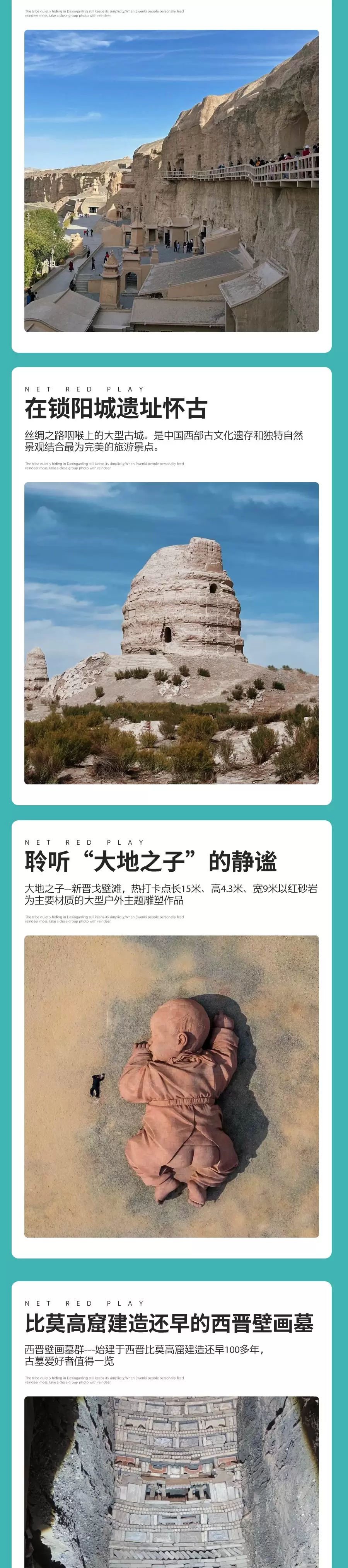 榆林窟+西晋壁画墓+锁阳城遗址一日游【敦煌起止/赠接24h接机接站/8人陆地头等舱】