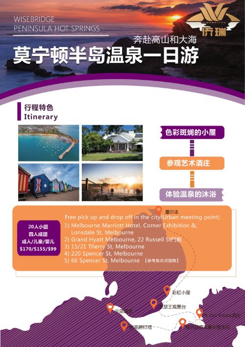 墨尔本莫宁顿|半岛温泉+艺术酒庄+亚瑟王座一日游【中文司导】【[半岛温泉 ]浸泡于天然地热泉水中,让氤氲热气包裹疲惫身心,尽享山海之间放松之旅】
