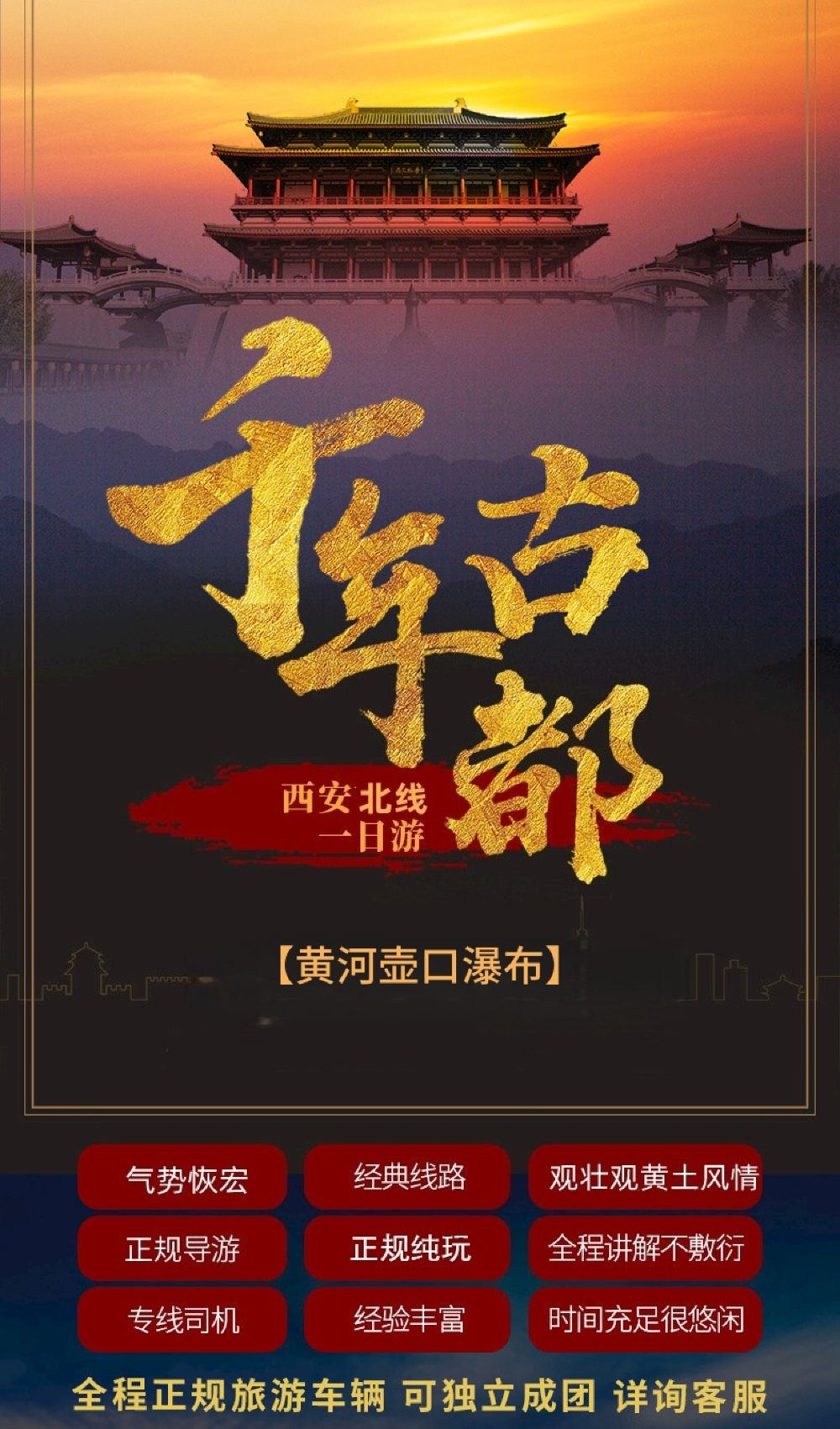 1、【相似产品】本产品为壶口瀑布一日游,不去黄帝陵,若想去黄帝陵,可选择本店另一个产品: