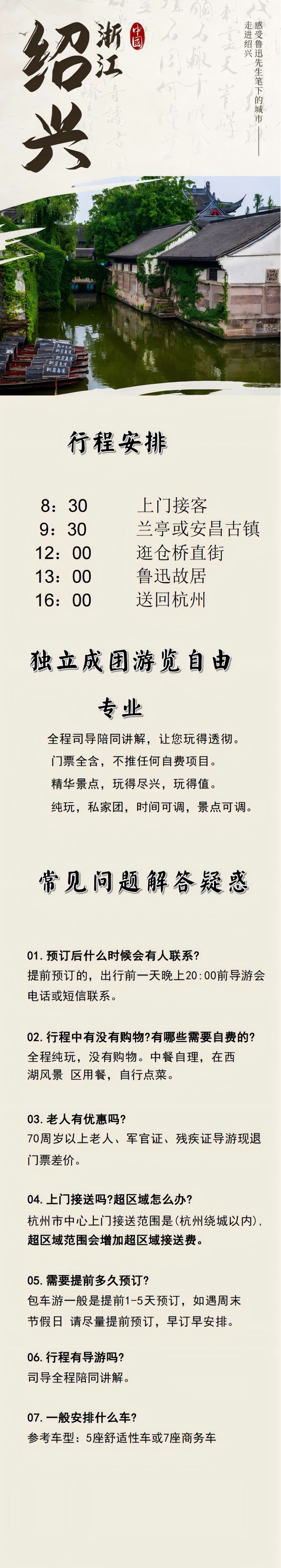 绍兴一日活动【景点可调换可定制无购物一单一团全程陪同讲解】【行程中接驳车辆为全系品牌车型】
