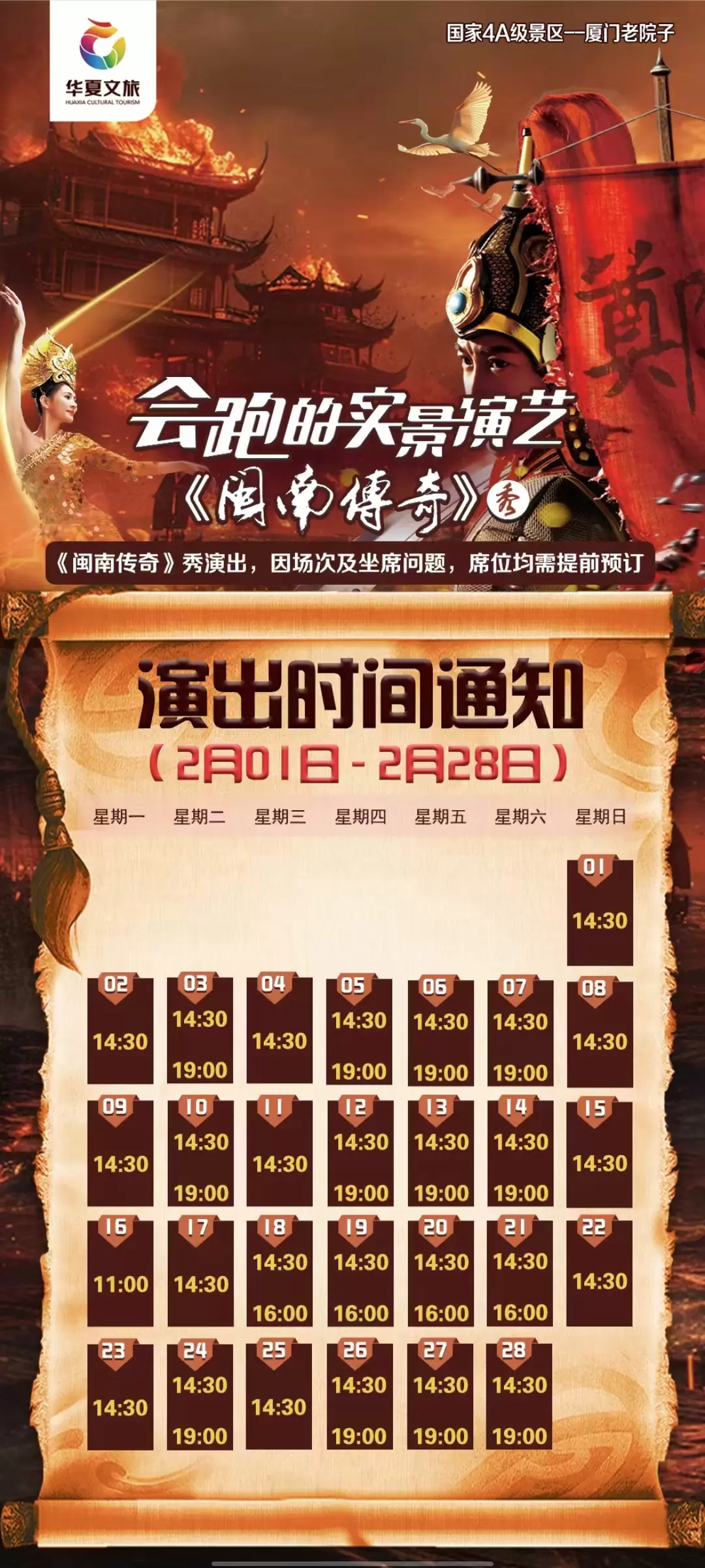厦门老院子景区+华夏演艺《闽南传奇》直通车/厦门大学一日游【可选厦门岛内上门接送/特色餐/纯玩无购物】