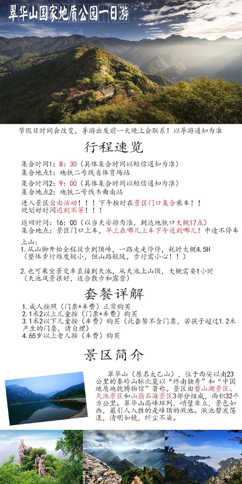 翠华山·秦岭终南山世界地质公园一日游【纳凉翠华山+天池一日】【全程旅行社精品服务 售前售后有保障】