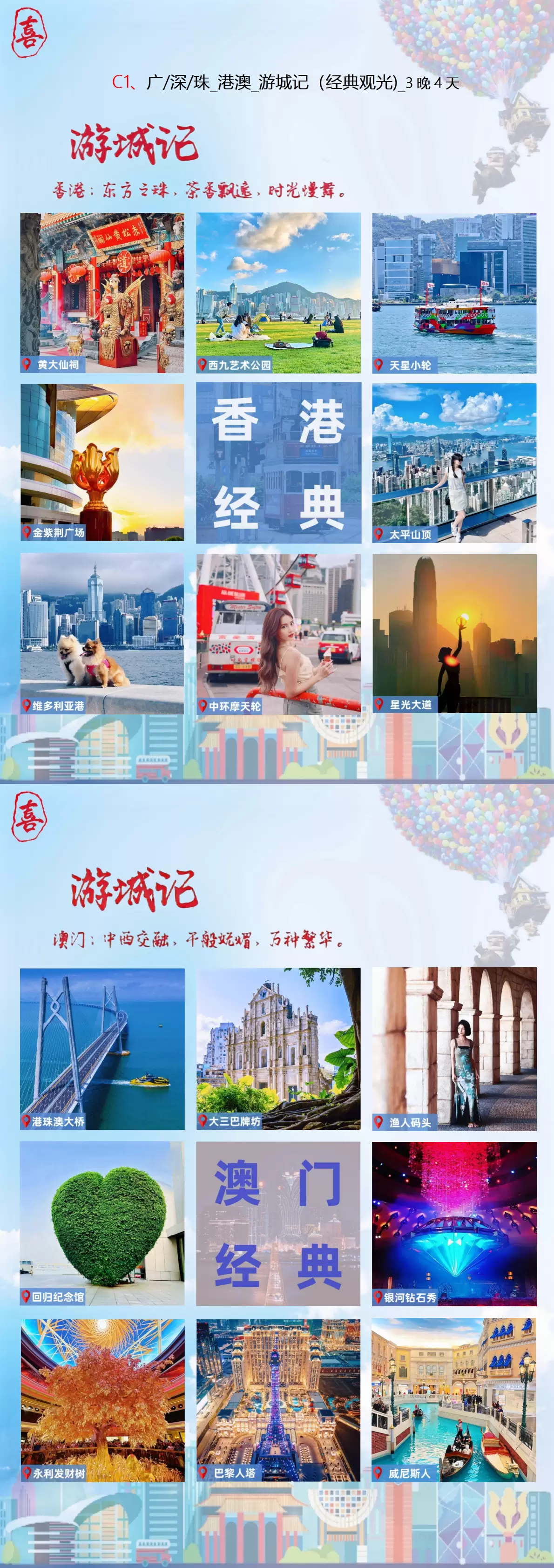 游城记丨香港+澳门4天3晚丨深圳/珠海进出【赠上网卡+转换插丨黄大仙祠+车观港珠澳大桥+威尼斯人丨接送机/站】