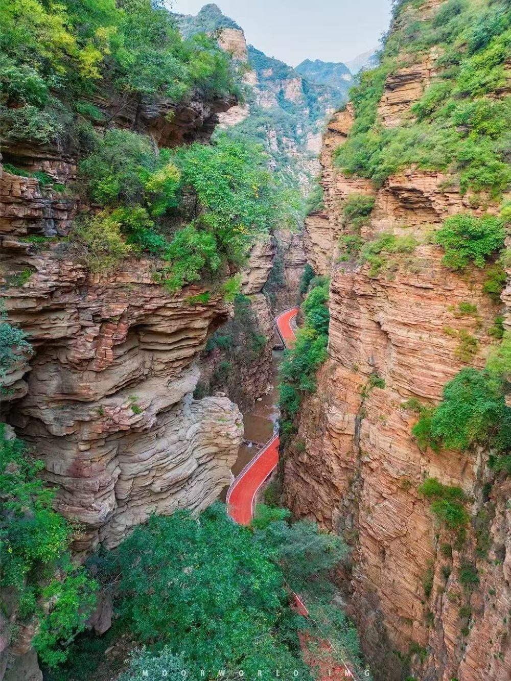 ▲ 邢台大峡谷群是国家AAAA级风景区、国家重点风景名胜区、中国国家地质公园。景区游览面积18平方公里,由24条峡谷组成,其中达到千米的有8条之多,主峡黄巢峡是群山之间的一道地堑,长达4000余米,峡深200余米,两壁对峙千仞,峡宽几米,窄处只十几厘米。抬头俯视,云崖倾扑,大有瞬间合拢之势,故称“一线天”。