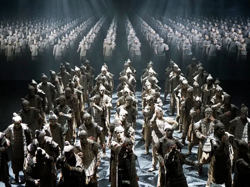 ▲ 中国首部战争史诗剧 复活的军团(被誉为活着的兵马俑) 家国情怀 第一幕 大秦史诗 第二幕 征兵 第三幕 牺牲 第四幕 复活 《复活的军团》以秦始皇兵马俑的考古历史研究成果和湖北 云梦竹简真实史诗为依托,借鉴故事片的跌宕起伏,通过沉浸 式转场观演的方式、声光电的渲染、大型舞台机械设备的加持 和专业演员的深情演绎,讲述了秦王赢政“以战止战”的伟大 战争史诗、两个秦代小兵“舍小家为大家”的家国情怀,深度 诠释了普通人的责任与担当,呈现关于秦历史、秦文化 和秦人精神的演出。
