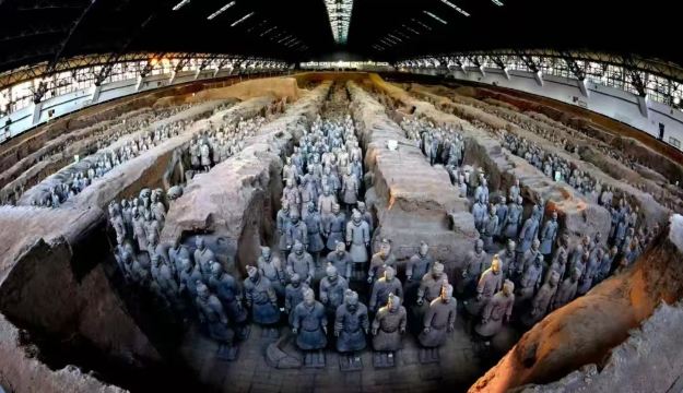 ▲ 二号坑:多兵种混编精锐*战略价值,面积6,000平方米,曲尺形布局,是秦,灵活战术”的缩影。含弩兵、骑兵、战车、步兵四大兵种,预计出土1,300件俑、500余匹马及89乘战车。