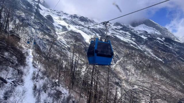 ▲ 甘海子游客中心西行约5公里。便来到了雪山脚下的下部站,这里是雪山大索道的起点站,一片茂密的原始森林,这里海拔3356米,索道由此往上运行,直至雪山主峰扇子陡正下方的上部站,那里海拔4506米。索道全长2914米,垂直高差1150米。是我国海拔最高的旅游客运索道。索道采用6人座豪华脱抱式全封闭吊箱,安全舒适,你的行程由下部站的茫茫林海,到上部站的白雪皑皑,中间运行时间仅为半小时,而你却有经历四季之感。(需要看日照的旅客需要提前与客服沟通,如未沟通我们将根据索道时间随机安排行程)