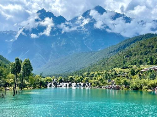 ▲ 蓝月谷风景区是位于云南省丽江市玉龙县玉龙雪山东麓的景区,景点有玉液湖、镜潭湖、蓝月湖和听涛湖。 蓝月谷是丽江玉龙雪山冰川的万古冰雪消融之后顺着峭壁流淌而下,不断汇集为山涧、溪流,最终在上游深谷之中形成了清澈见底、甘冽无比的河流。 玉龙雪山管委会于2006年投资开发了蓝月谷景点,建设6个景观拦砂坝。 2024年8月10日,丽江玉龙雪山景区蓝月谷内举办了一场以“爱在七夕,情定玉龙”为主题的七夕特别活动,旨在传承与弘扬中华优秀传统文化,激发传统节日的现代活力