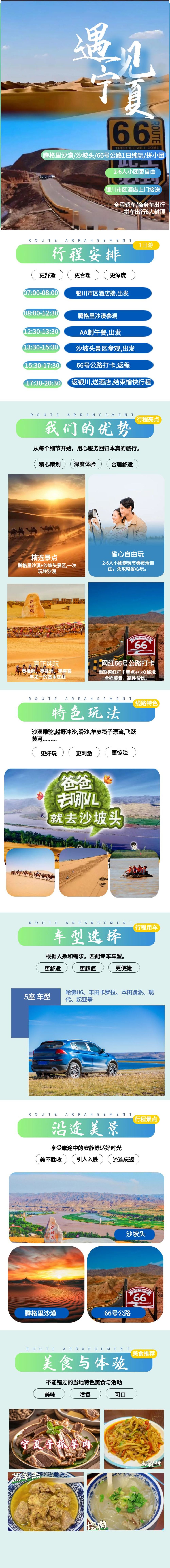 腾格里沙漠+沙坡头+66号公路一日游【6人内小团+酒店接送】【体验腾格里沙漠的广袤无垠;领略沙坡头景区黄河与沙漠交融的独特风光;打卡充满西部风情的66号公路,】