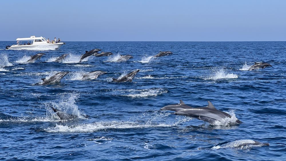 阿曼湾的海豚是纯野生的,自然栖息在这片海域,有90%概率可以追逐到海豚。古希腊人认为看到海豚在船周围出现是一个好兆头。