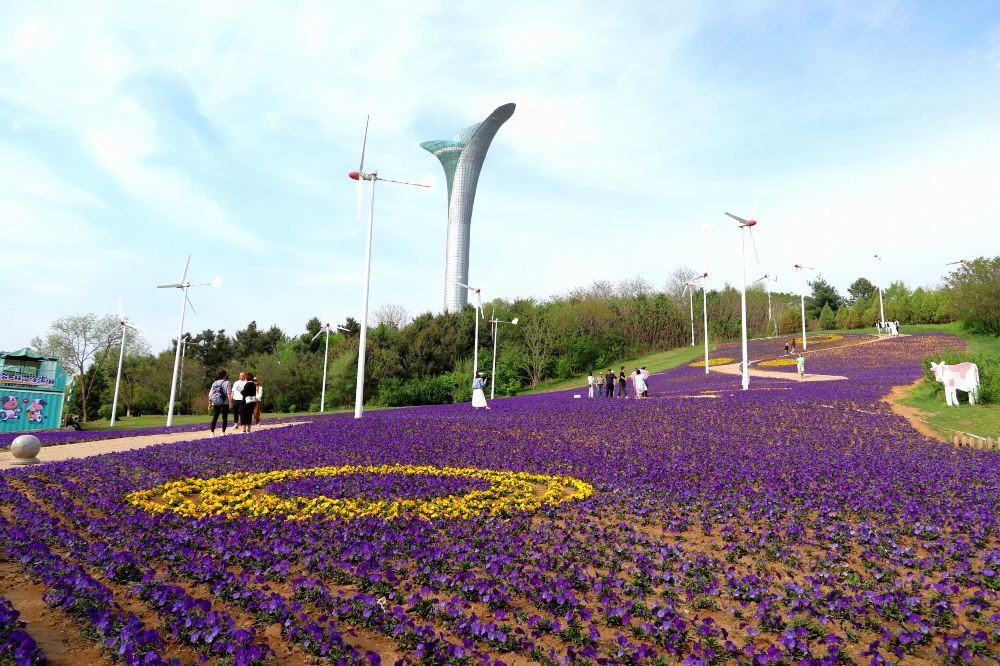 植物园以百合塔、凤凰广场、玫瑰园为标志性主题建筑,荟萃了世界五大洲及国内重点城市的园林和建筑精品,共有100个展园分布于南北两区。