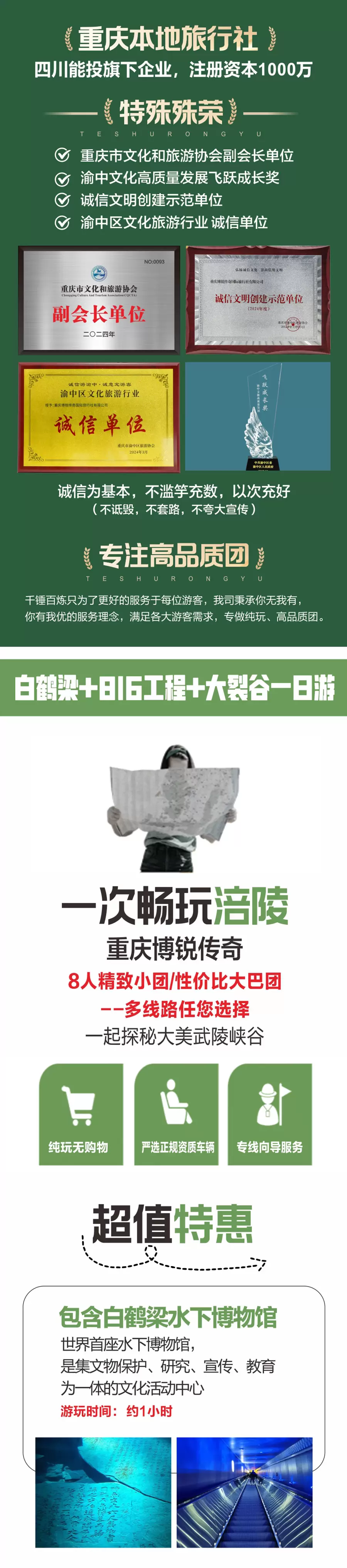 白鹤梁水下博物馆+816工程景区+武陵山大裂谷一日游【可选8人小团+纯玩不购物+指定区域免费接驳】