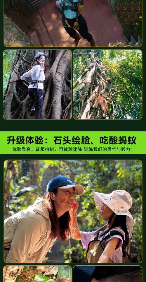 温馨提示:抓螃蟹、尝酸蚂蚁、野果、昆虫科普。这些都属于季节性和运气概率问题,若因不可控天气和季节因素没有体验到此项目,我司将不会做出赔偿和解释,建议的勿拍~